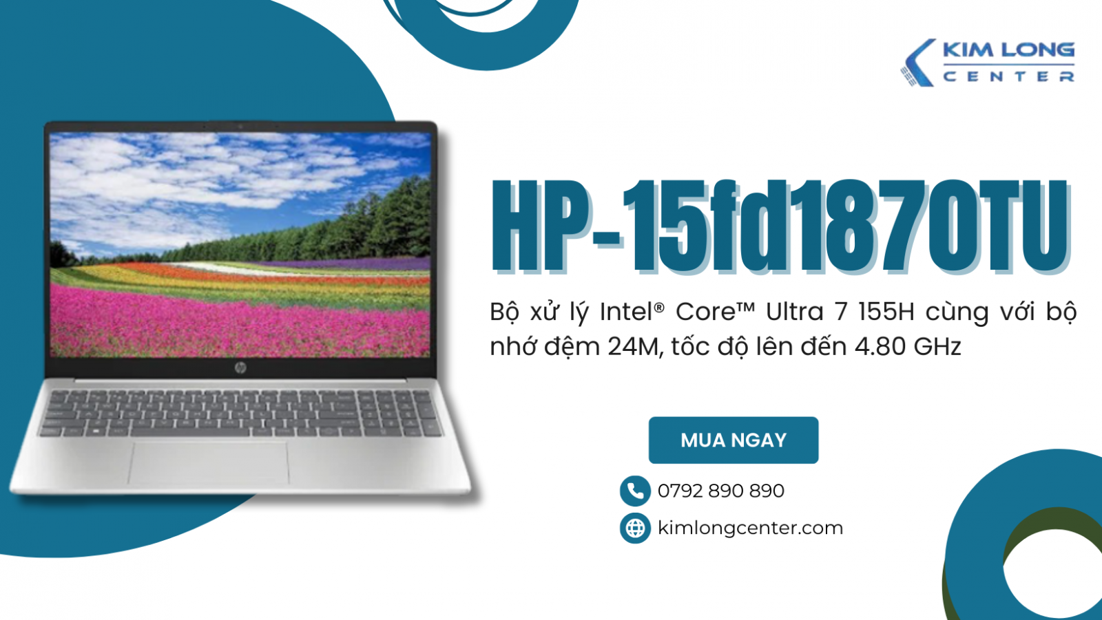 Với Intel® Core™ Ultra 7 155H, Intel® Arc™ graphics, và màn hình sắc nét 15.6 inch FHD, HP 15-fd1870TU là lựa chọn lý tưởng cho người dùng cần một chiếc laptop mạnh mẽ, hiệu quả trong công việc và giải trí. Hãy đến ngay Kim Long Center để trải nghiệm và sở hữu chiếc laptop này với nhiều ưu đãi hấp dẫn!