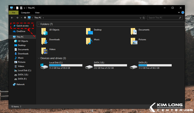 Quick access sẽ là nơi chứa danh sách các dữ liệu mà lượt sử dụng máy tính trước đã truy cập và sử dụng.