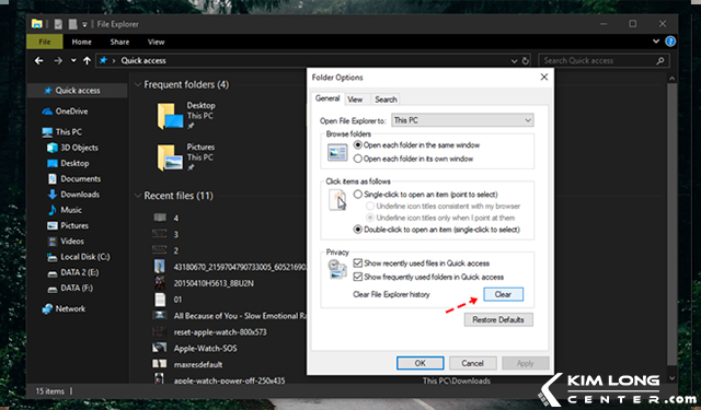 Quick access khá hay nhưng ai cũng có thể xóa hoạt động gần đây của bạn. Chỉ cần nhấp chuột trái vào Quick access > Options > Clear File Explorer History. Nếu nhận thấy hoạt động gần đây của bạn trong Quick access đã bị xóa, ít nhất là một dấu hiệu cho thấy ai đó đã sử dụng PC của bạn. Cách để biết những thư mục họ đã mở: