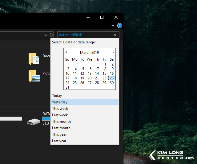 Khi đó hộp hiển thị lựa chọn thời gian xuất hiện, bạn có thể chọn kiểm tra ngày hôm qua,
