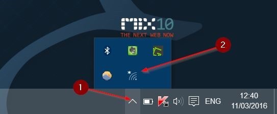 Bước 1: Click vào mũi tên nhỏ trên thanh Taskbar Windows 10 để xem các biểu tượng bị ẩn