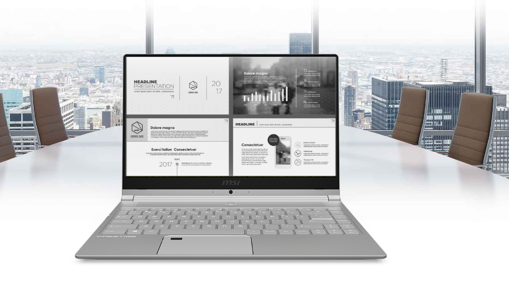 MSI đã giới thiệu máy tính xách tay PS42 14 inch của mình tại Computex 2018 như một phần của dòng máy tính xách tay kinh doanh của mình. Dòng MSI PS42 này đáng chú ý với các khung bezels 5.7 mm rất hẹp trên ba mặt và thiết kế sắc nét được lấy cảm hứng từ máy tính xách tay chơi game GS65 gần đây của nhà sản xuất .