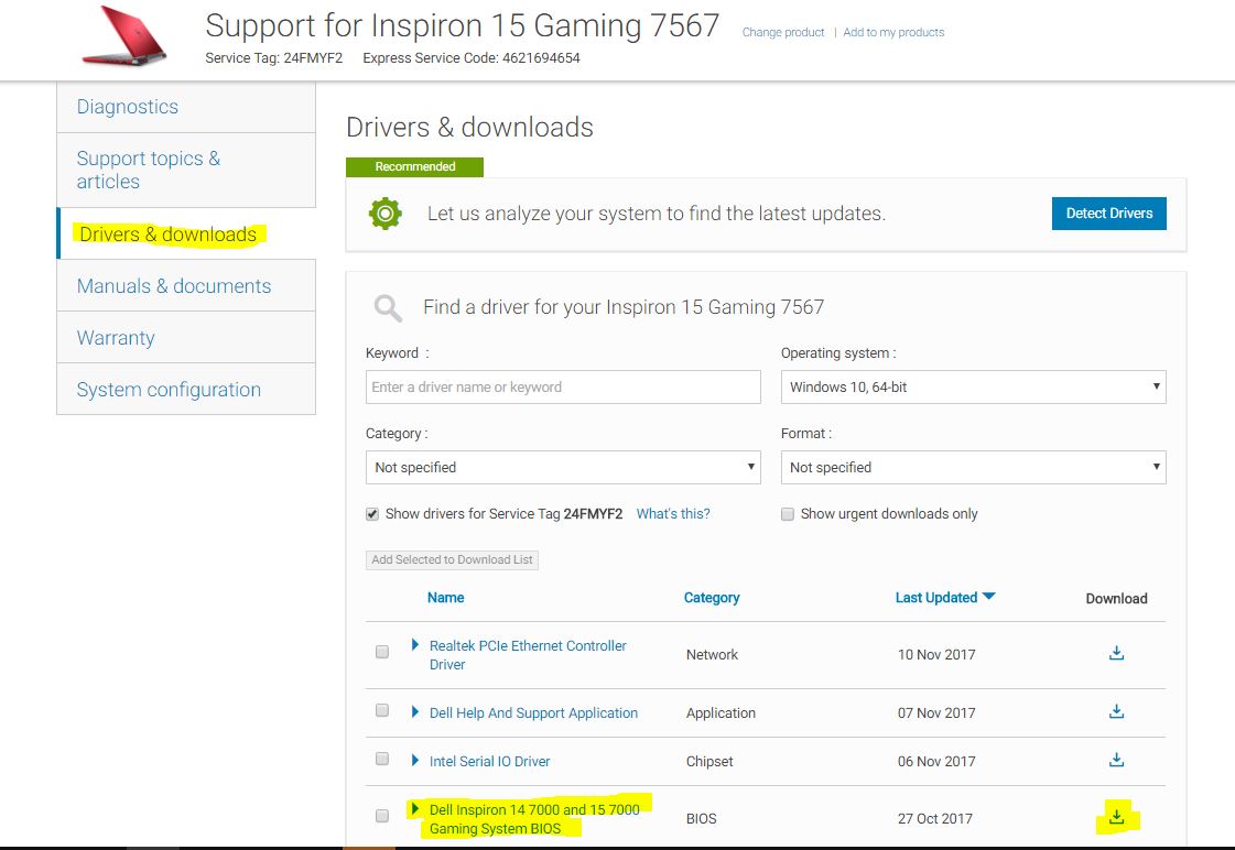 B2: chọn mục Drivers & Downloads -> tìm phần driver ..BIOS -> download về và cài đặt.
