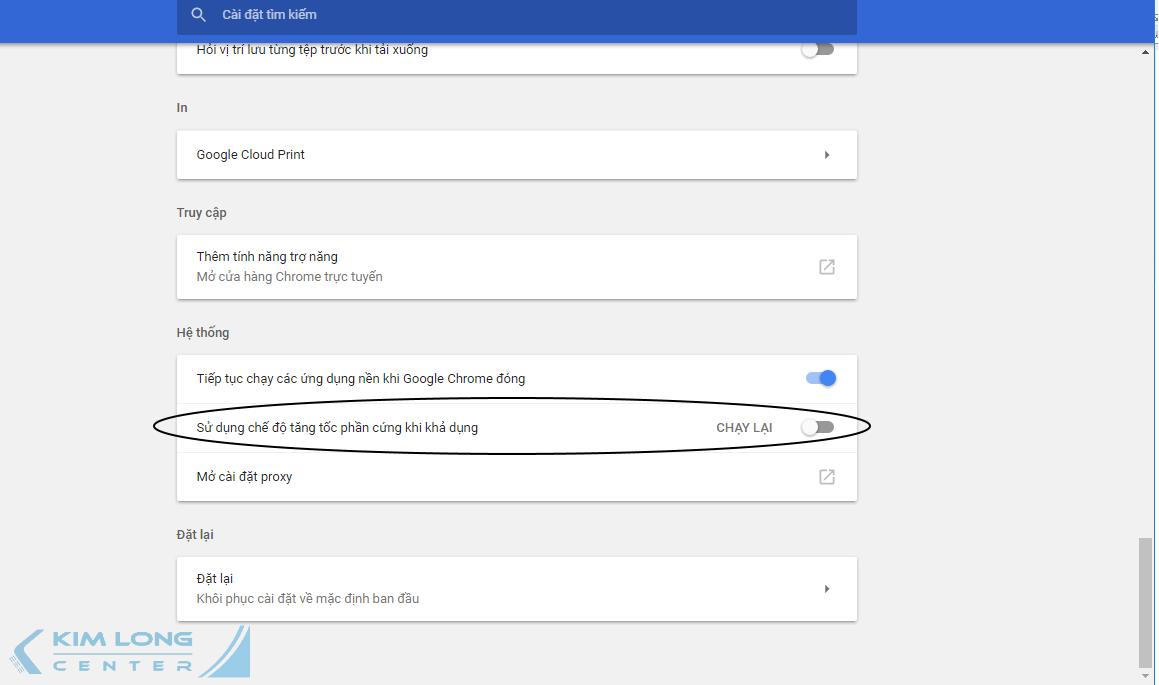 Lỗi này đa số là do một số file update trên hệ thống hoặc driver mới xung đột với tính năng Tăng tốc phần cứng trên trình duyệt Google chrome gây nên tình trạng đen toàn bộ màn hình. Để sửa lỗi này bạn chỉ cần truy cập vào mục Setting (Cài đặt) của chrome -> Advance Setting (cài đặt nâng cao) -> turn off chức năng Use hardware celeration..(Tăng tốc phần cứng..) rồi tắt mở lại chrome để kiểm tra nhé