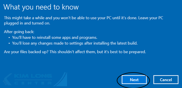 Đợi quá trình hạ cấp thực hiện xong (khá nhanh), sau khi trở về bản trước đó rồi (1703 hoặc cũ hơn) thì test lại lỗi Sleep mode nhé, nếu vẫn còn lỗi thì cập nhật lại bios và driver card VGA như hướng dẫn lúc đầu là ok.