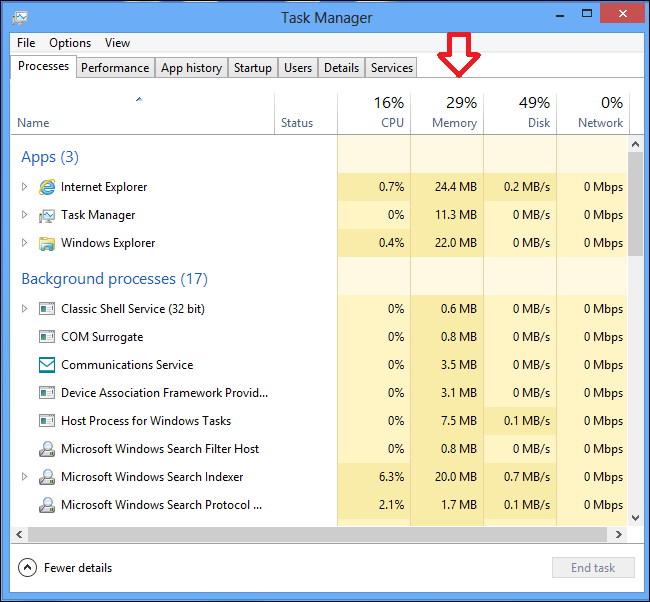 Để xác định được điều này bạn có thể dùng Windows Task Manager, hãy kiểm tra như hình bên dưới