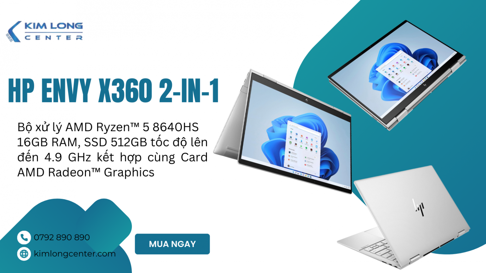 Cuối cùng trong danh sách là một chiếc laptop HP Envy x360 2-in-1 (HN016) là chiếc laptop đa năng với thiết kế gọn nhẹ và hiệu năng mạnh mẽ. Hiệu năng ấn tượng với AMD Ryzen™ 5 8640HS (6 nhân, 12 luồng, xung nhịp tối đa 4.9GHz), RAM 16GB LPDDR5 6400MHz, và SSD 512GB NVMe, giúp xử lý nhanh chóng các tác vụ đa nhiệm, đồ họa nhẹ và giải trí. Màn hình 14 inch WUXGA IPS cảm ứng sắc nét, độ sáng 300 nits, hỗ trợ đa điểm chạm, tối ưu trải nghiệm làm việc và sáng tạo.