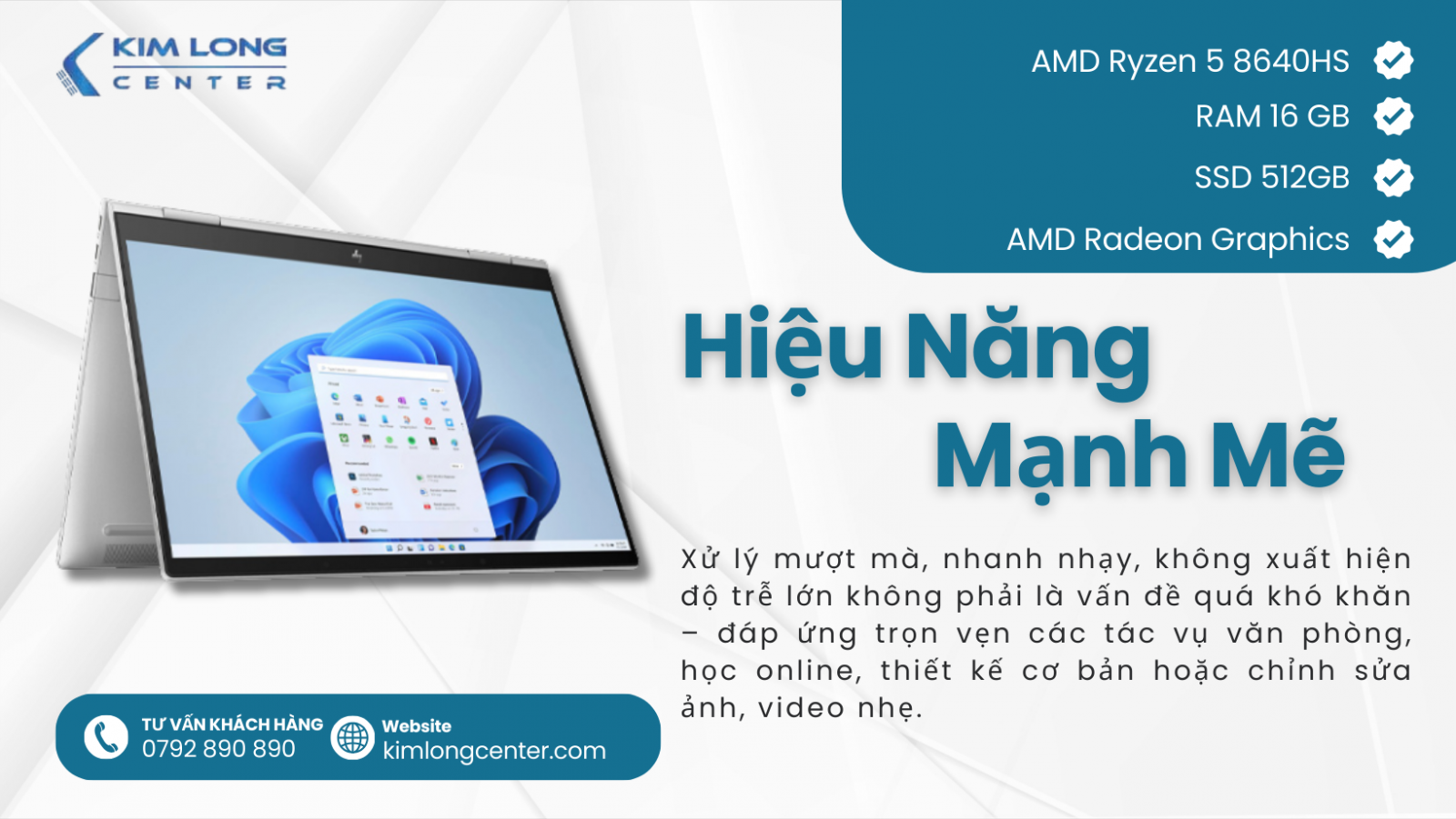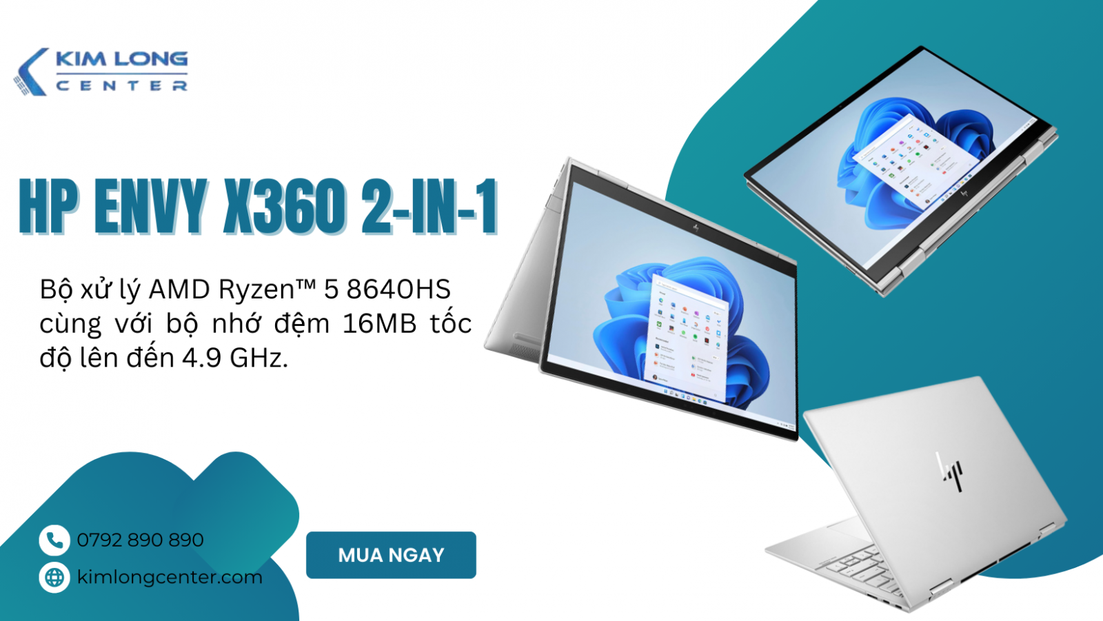 HP Envy x360 14-fa0013dx là chiếc laptop hoàn hảo cho người dùng yêu thích sự linh hoạt, hiệu năng mạnh mẽ và thiết kế gọn nhẹ. Từ công việc văn phòng, học tập đến sáng tạo nội dung đều được đáp ứng mượt mà. Nếu bạn đang tìm kiếm một chiếc máy 2-trong-1 đa năng để tối ưu hoá trải nghiệm làm việc và giải trí, hãy đến ngay Kim Long Center để trải nghiệm thực tế và sở hữu HP Envy x360 với những ưu đãi hấp dẫn nhất!