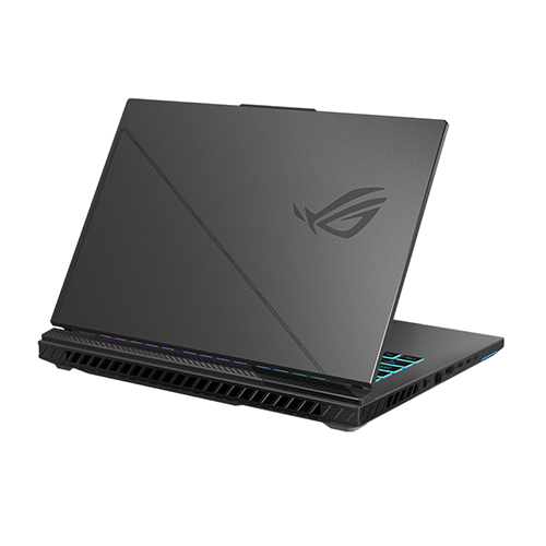 Bề mặt vỏ của laptop được làm bằng nhựa cứng với họa tiết kim loại, tạo nên vẻ ngoài đầy chất lượng và sang trọng. Logo ROG của ASUS được khắc nổi bật ở phía sau, tạo điểm nhấn độc đáo cho sản phẩm.
