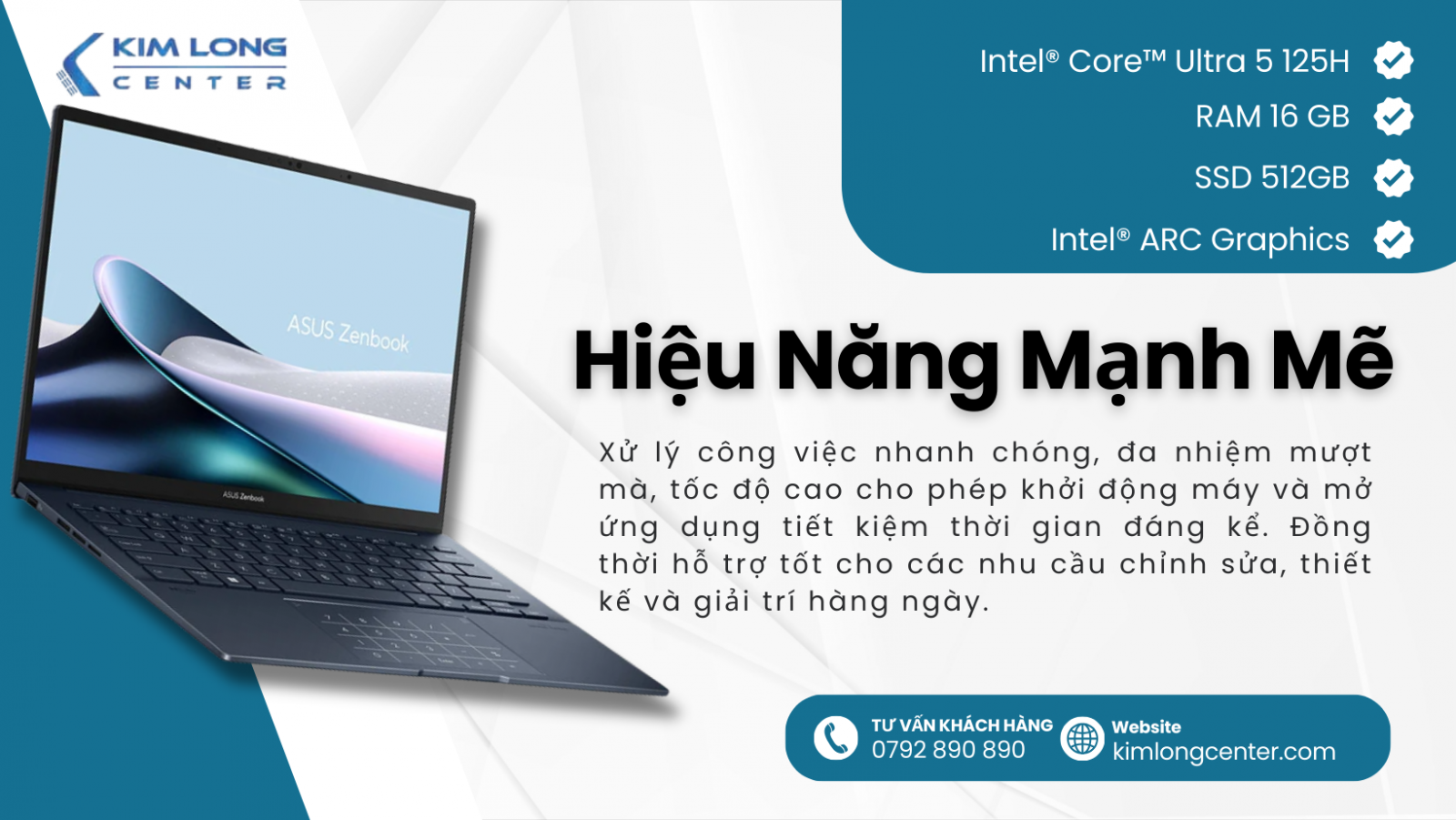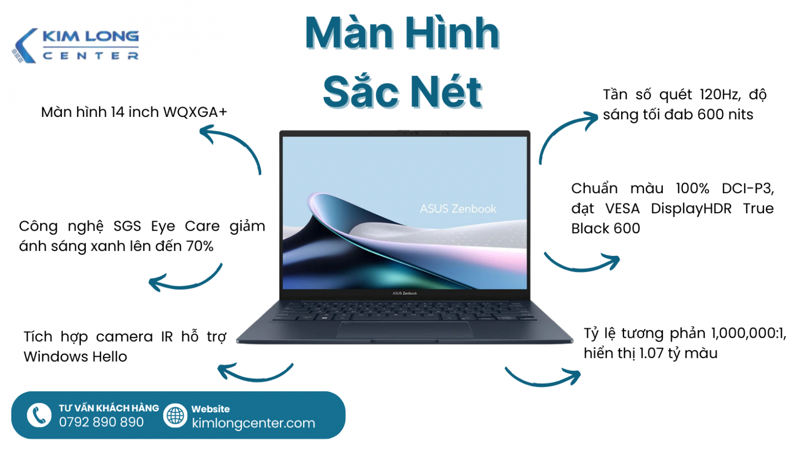 Với thiết kế mỏng nhẹ, hiệu suất mạnh mẽ, màn hình OLED 3K sống động và đầy đủ các cổng kết nối, ASUS Zenbook 14 OLED UX3405MA-PP151W là lựa chọn lý tưởng cho những ai cần một chiếc laptop vừa mạnh mẽ lại vừa thời trang, phục vụ công việc, sáng tạo và giải trí. Hãy đến ngay Kim Long Center để sở hữu chiếc laptop này và trải nghiệm những tính năng tuyệt vời của nó!