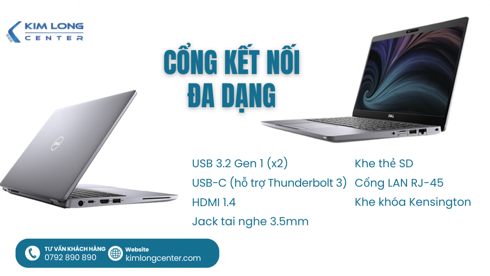Dell Latitude 5410 được trang bị đầy đủ cổng kết nối hiện đại, bao gồm: