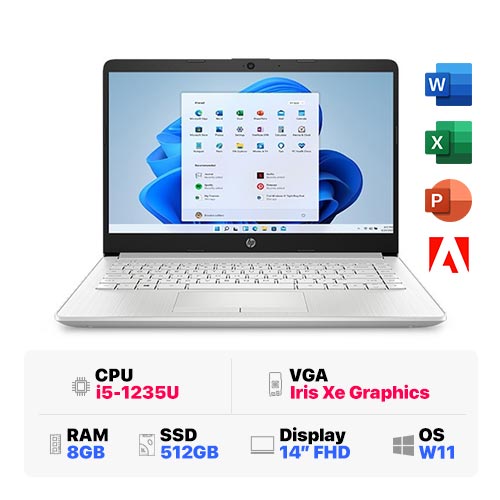 HP 14s-dp5053TU 6R9M6PA : i5-1235U | 8GB RAM | 512GB SSD | Intel Iris Xe Graphics | 14 inch HD | Windows 11 | Silver