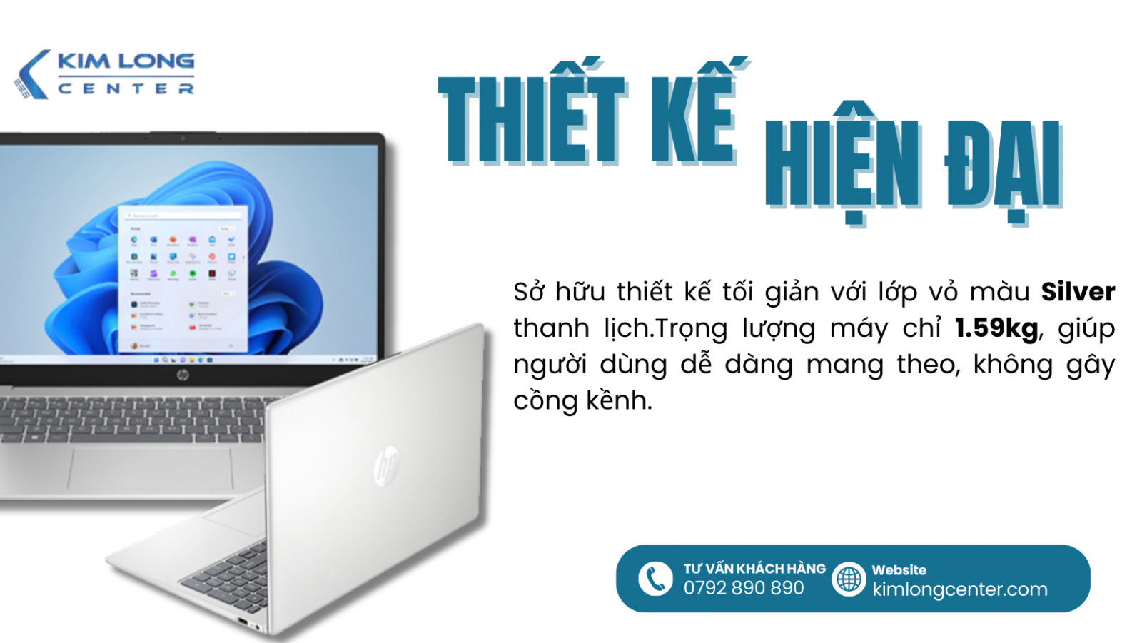 Laptop HP 15-fd0235TU sở hữu thiết kế tối giản, hiện đại với lớp vỏ màu Silver thanh lịch phù hợp với nhiều đối tượng người dùng. Các đường nét bo tròn mềm mại kết hợp cùng bề mặt hoàn thiện mịn tạo cảm giác chắc chắn nhưng vẫn giữ được nét sang trọng. Trọng lượng máy chỉ 1.59kg, giúp người dùng dễ dàng mang theo trong balo hay túi xách mà không gây cồng kềnh. Đây là chiếc máy tính hoàn hảo cho những ai thường xuyên di chuyển và làm việc linh hoạt nhiều nơi.
