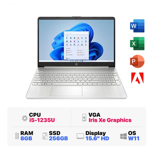 HP 15s-fq5081TU 6K7A1PA : i5-1235U | 8GB RAM | 256GB SSD | Intel Iris Xe Graphics | 15.6 inch HD | Windows 11 | Natural Silver