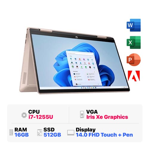 HP Pavilion X360 14-ek0055TU 6L293PA : i7-1255U | 16GB RAM | 512GB SSD | Intel Iris Xe Graphics | 14 inch FHD Touch + Pen | Finger | Windows 11 | Pale Rose Gold