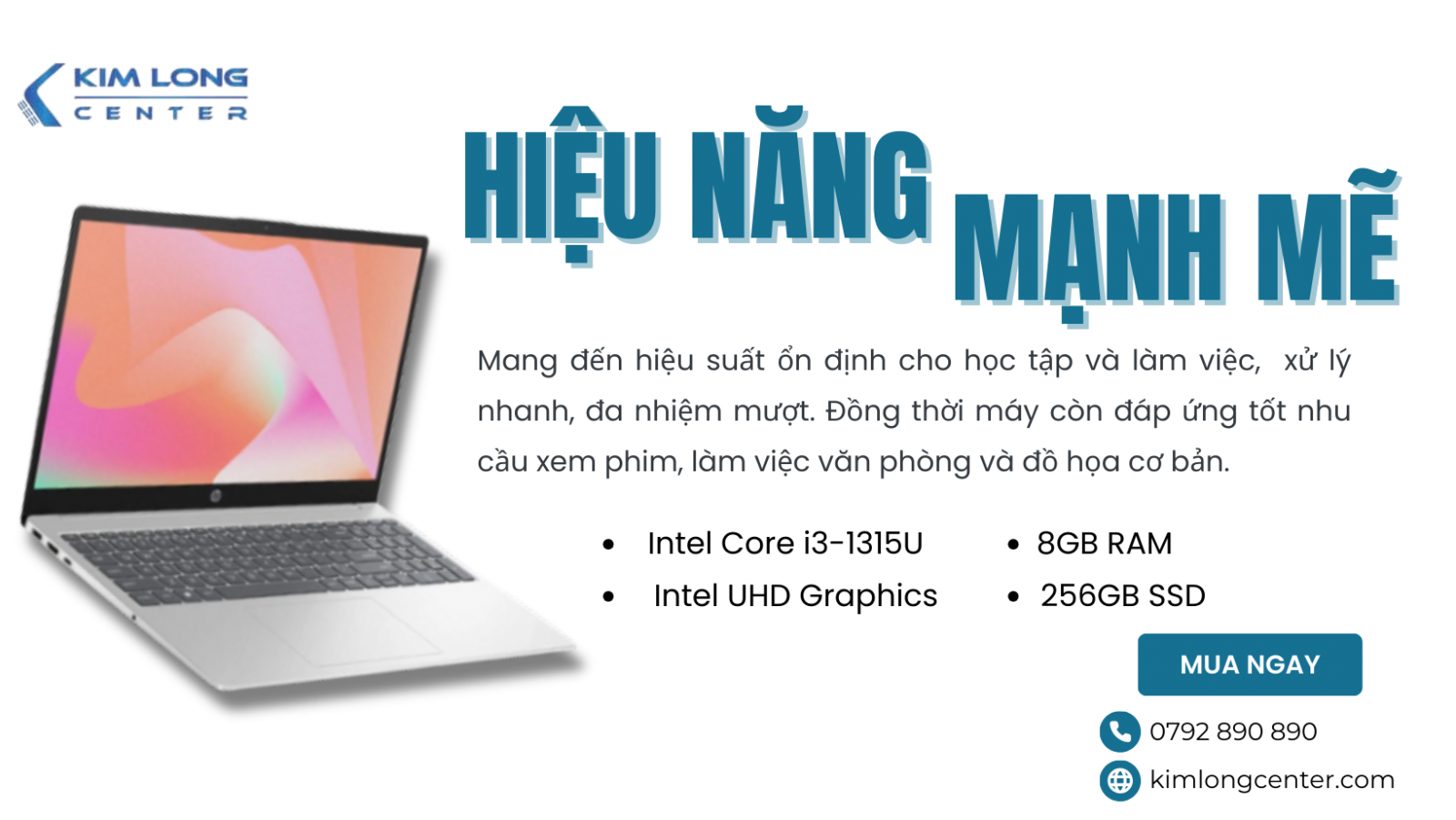 HP 15-fd0306TU (A2NL7PA) mang đến hiệu suất ổn định cho nhu cầu học tập và làm việc hàng ngày. Máy sở hữu vi xử lý Intel Core i3-1315U với xung nhịp tối đa 4.5GHz, xử lý mượt các tác vụ văn phòng, lướt web và đa nhiệm nhẹ nhàng. Kết hợp với RAM 8GB DDR4, người dùng có thể chuyển đổi ứng dụng linh hoạt mà không gián đoạn. Ổ cứng SSD 256GB PCIe NVMe tăng tốc khởi động và truy cập dữ liệu nhanh chóng.