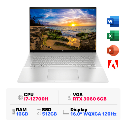 HP Envy 16-h0034TX 6K7G0PA: i7-12700H | 16GB RAM | 512GB SSD | Intel Iris Xe Graphics + RTX 3060 6GB | 16 inch WQXGA IPS 120Hz | Win 11 | Bạc