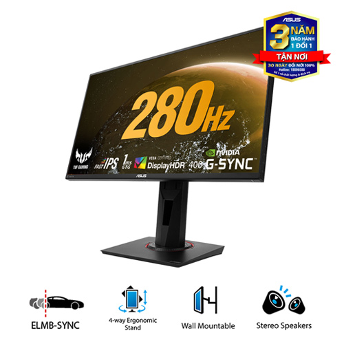 | Màn hình / LCD | 24.5 inch FHD (1920 x 1080) IPS 16:9, 400nits, 400cd/㎡, 16.7 triệu màu, 1000:1, 280Hz, 1ms, GSync + DisplayPort 1.2 x 1 HDMI(v1.4) x 1 Jack 3,5 mm |