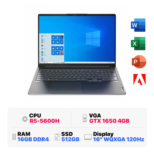 Lenovo IdeaPad 5 Pro 16ACH6 82L500WMVN : R5-5600H | 16GB RAM | 512GB SSD | GeForce GTX 1650 4GB | 16 WQXGA 120Hz | Win 11 | Storm Grey