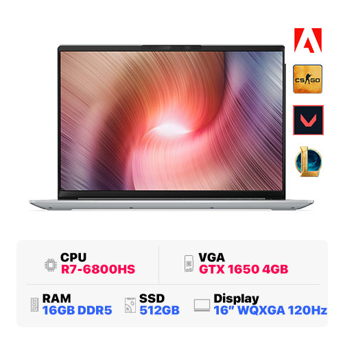 Lenovo Ideapad Slim 5 Pro 16ARH7 82SN00AFVN : R7-6800HS | 16GB RAM | 512GB SSD | GTX 1650 4GB | 16 inch WQXGA 2.5K 120Hz | Windows 11 | IR Camera | Cloud Grey