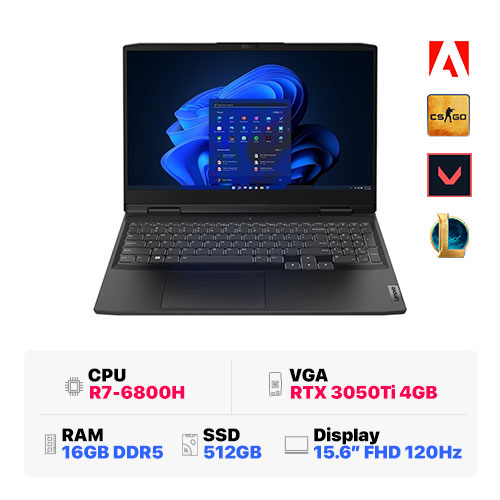 Lenovo Ideapad Gaming 3 15ARH7 82SB007MVN : R7-6800H | 16GB RAM | 512GB SSD | RTX 3050Ti 4GB | 15.6 inch FHD 120Hz | Windows 11 | Onyx Grey