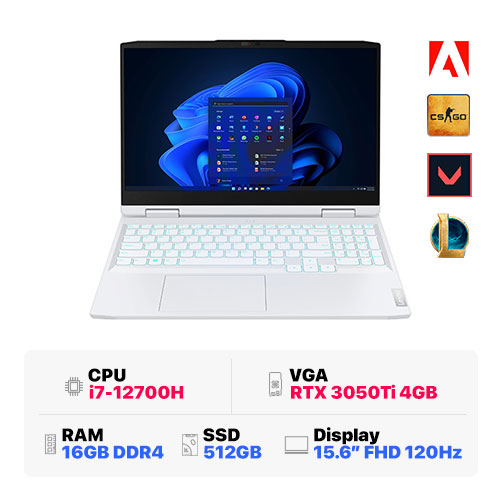 Lenovo IdeaPad Gaming 3 15IAH7 82S9007UVN : i7-12700H | 16GB RAM | 512GB SSD | GeForce RTX 3050Ti | 15.6inch FHD | Windows 11 Home 64 | Glacier White