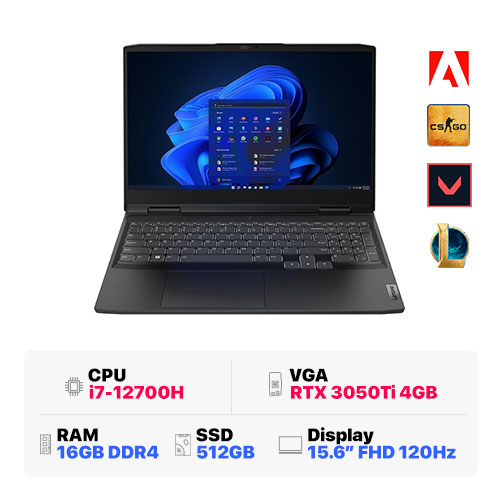 Lenovo Ideapad Gaming 3 15IAH7 82S90087VN : i7-12700H | 16GB RAM | 512GB SSD | RTX 3050Ti 4GB | 15.6 inch FHD 120Hz | Windows 11 | Grey