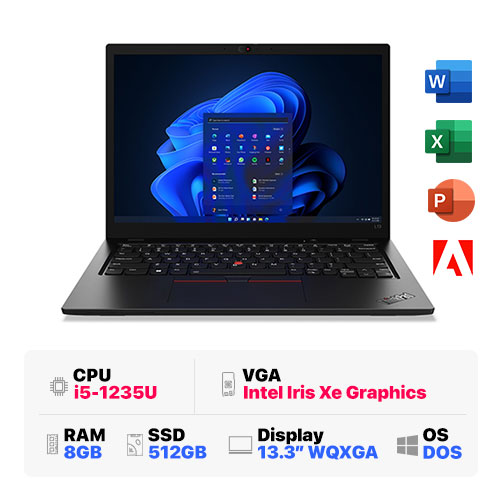 Lenovo Thinkpad L13 Gen 3 21B3005QVA : i5-1235U | 8GB RAM | 512GB SSD | Intel Iris Xe Graphics | 13.3 inch WUXGA IPS | Finger | IR Camera | FreeDOS | Black