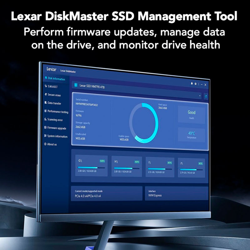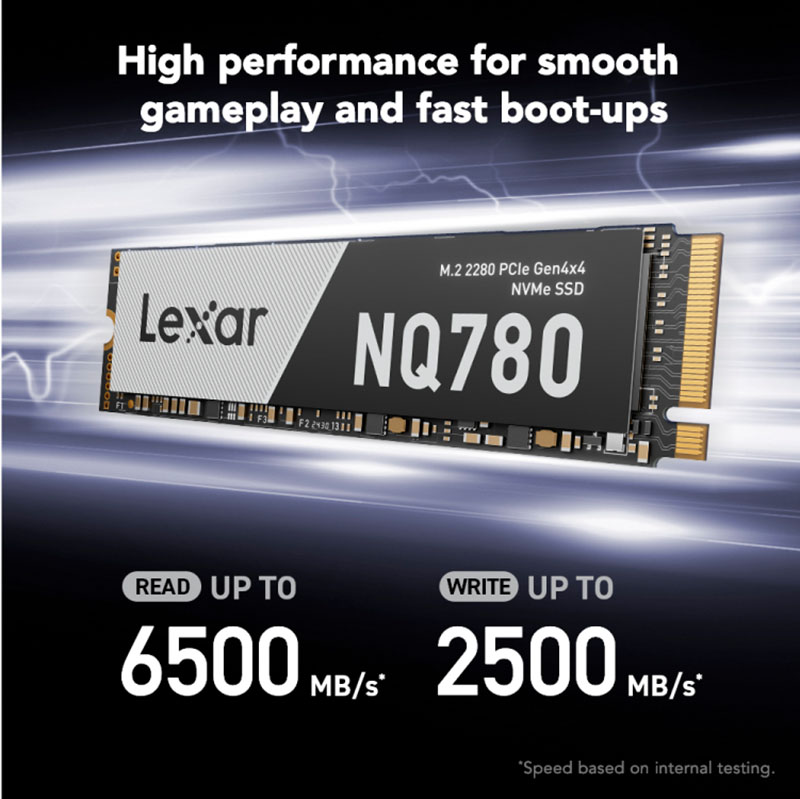 SSD Lexar NQ780 1TB M.2 PCIe Gen4 x4 NVMe LNQ780X001T-RNNNG được trang bị giao tiếp PCIe 4.0 với tốc độ đọc lên đến 6500MB/s và tốc độ ghi đạt 2500MB/s, giúp xử lý nhanh chóng các tác vụ từ khởi động hệ điều hành, tải ứng dụng nặng cho tới chơi game và chỉnh sửa video. So với HDD truyền thống và thậm chí nhiều dòng SSD SATA, hiệu suất của NQ780 vượt trội, mang lại trải nghiệm mượt mà, giảm thiểu tối đa độ trễ, phù hợp cho người dùng văn phòng, game thủ và dân sáng tạo nội dung cần tốc độ cao.