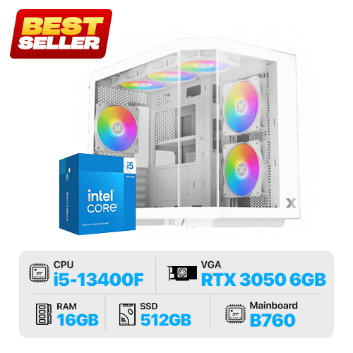 PC Gaming KLC-CUBIMA : i5-13400F | 16GB | 512GB | B760M-K | RTX 3050 6GB | P600W | Case Xigmatek Cubi M Arctic | Keyboard & Mouse K120