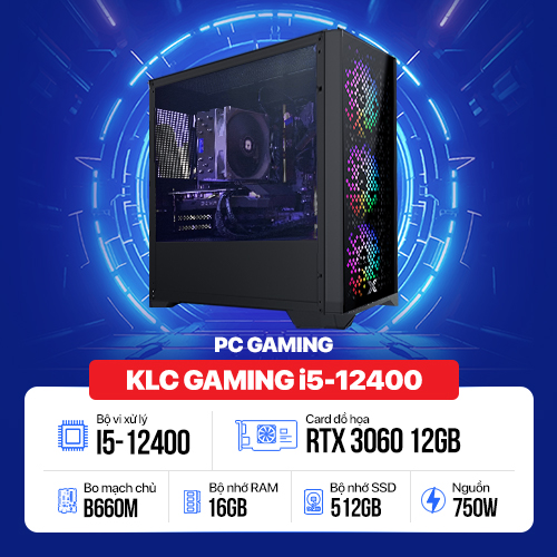 PC KLC Gaming : i5-12400/ RTX 3060 12GB/ Mouse + Keyboard Logitech K120