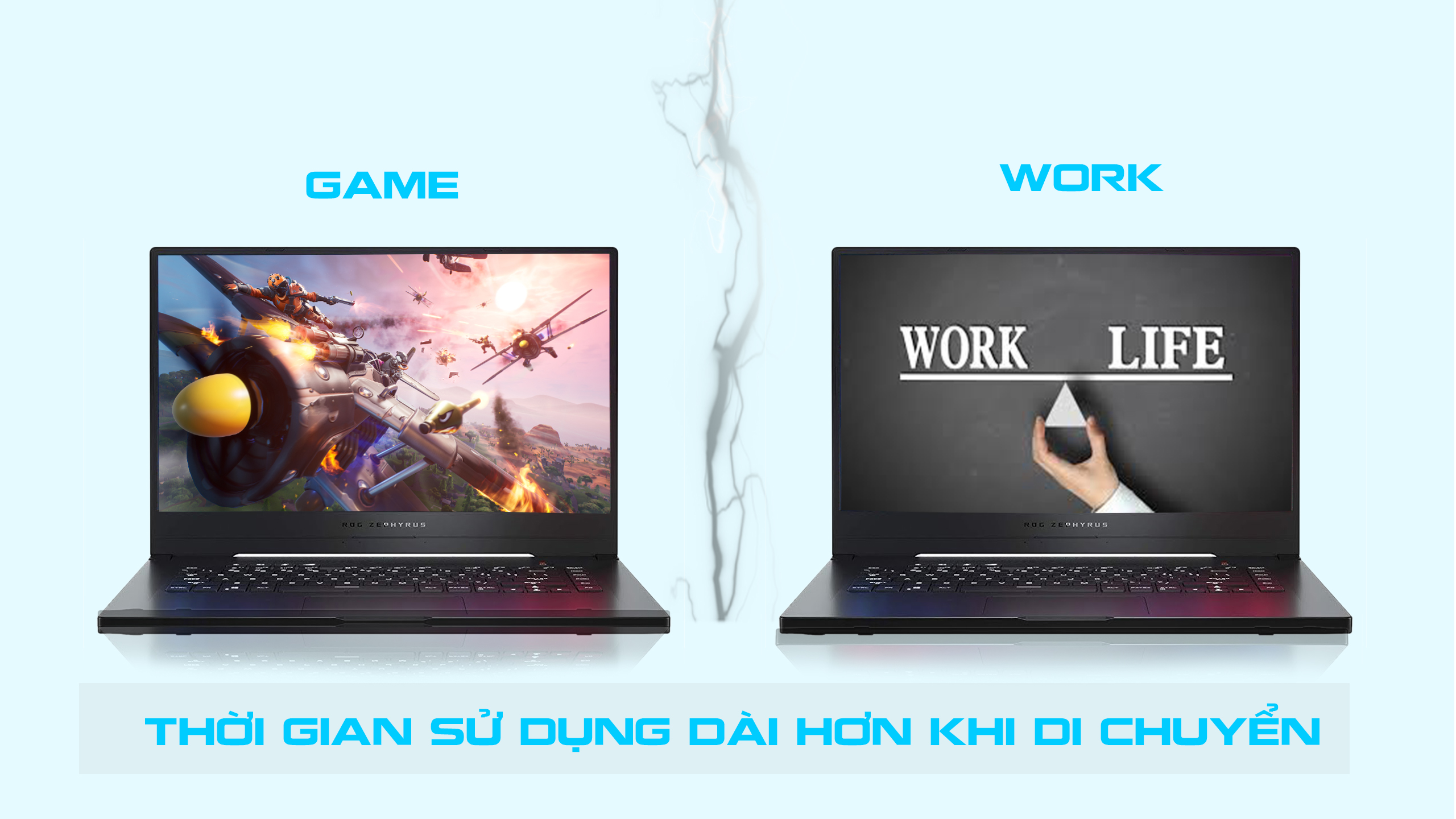 Điểm cộng lớn nhất của ASUS ROG Zephyrus G GA502 là thời lượng sử dụng pin rất lâu cũng như rút ngắn thời gian sạc. Bởi vì được trang bị CPU AMD® mà máy có đủ sức mạnh để chơi game với cường độ cao, duyệt web qua Wi-fi và xem video chất lượng 1080p lên đến gần 7 giờ. Với pin khủng như vậy các game thủ có thể hoàn toàn yên tâm chiến đấu mà không lo bị gián đoạn giữa chừng.