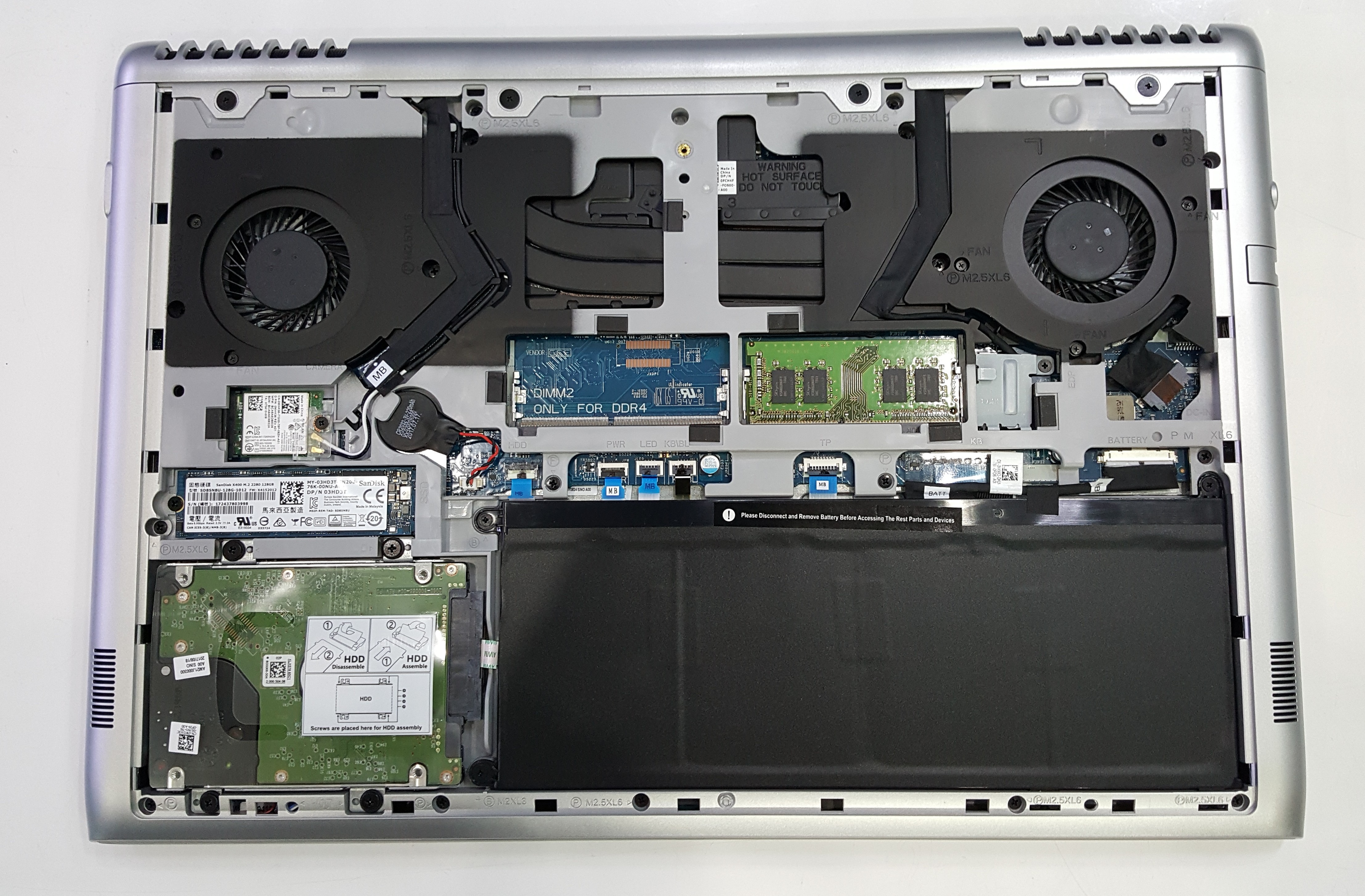 Nội thất bên trong có thể nhìn thấy rõ 2 tản nhiệt lớn , hỗ trợ Ram mặc định trong máy là 8GB có thể nâng cấp max đến 32GB tùy nhu cầu bạn sử dụng . Đặc biệt Dell Vostro hỗ trợ SSD cả 2 chuẩn M2sata và PCIe , cho tốc độ truy xuất nhanh hơn nhiều so với ổ cứng thông thường .Kèm theo ổ cứng SSD là một ổ cứng HDD dung lương lớn 1TB với tộc độ 5400rpm .