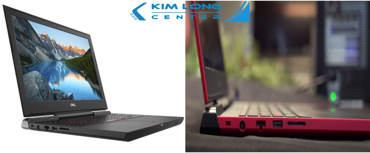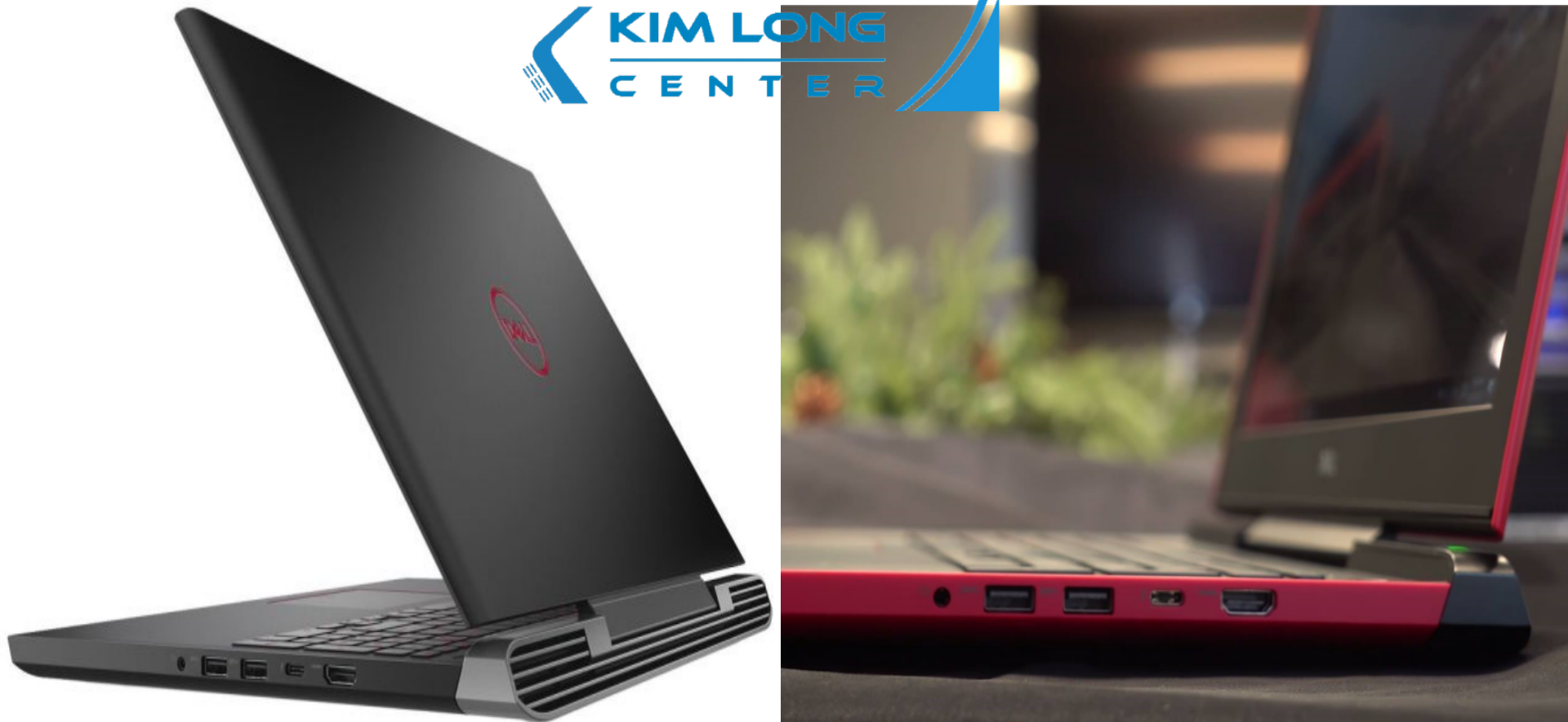 Bên phải Dell Inspiron 7577 tích hợp các cổng kết nối chuẩn như HDMI 2.0 ,hai cổng usb 3.0 (một trong hai tích hợp chức năng power share) đặc biệt tăng cường thêm cổng Thunderbolt 3 (cổng USB3.1 Gen2 Type-C với sự hỗ trợ cho Thunderbolt và DisplayPort). Đây là cổng kết nối cho dòng gaming mà các hãng khác đã tích hợp trước, Cuối cùng là một jack tai nghe 3.5mm tích hợp chung với cổng mic. Bên trái vẫn giữ nguyên thiết kế với cổng sạc, một khe cắm khóa Noble, cổng kết nối Gigabit Ethernet, SD Card reader 2-trong-1
